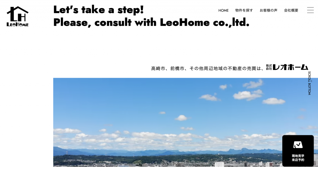 インパクトのある大きめの写真を活用した、ダイナミックでシンプルな不動産ホームページの事例です。