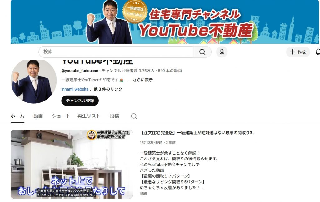 一級建築士の資格を持つ印南氏が運営するこのチャンネルは、専門知識を武器にしています。