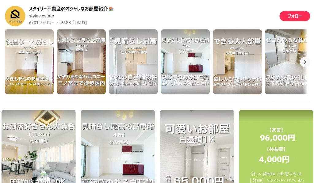 Instagramは、ビジュアル重視の物件アピールに向いています。